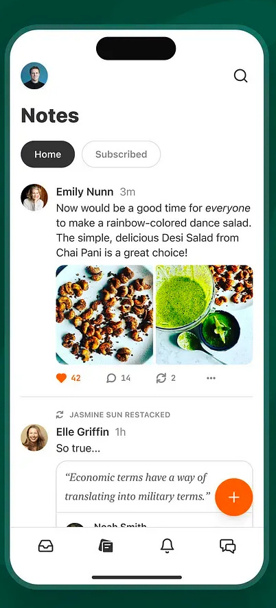 Notes will appear on the app in your home area. I think the Substack app is fabulous. The screenshot below is an example. You can control whether you want to be notified when there is activity on Notes. Here is your guide to changing your notifications.