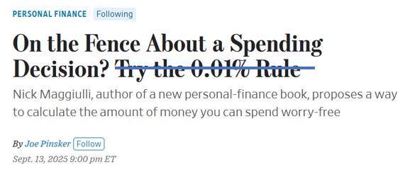 Last weekend, a new personal finance decision rule received a Wall Street Journal headline.